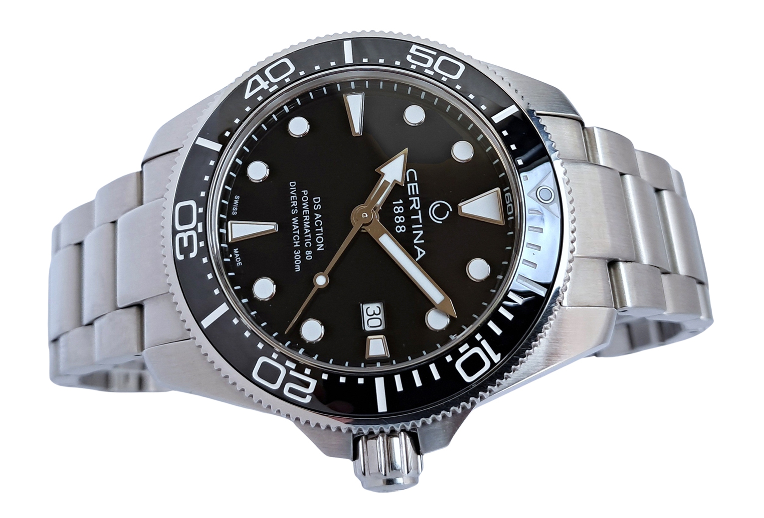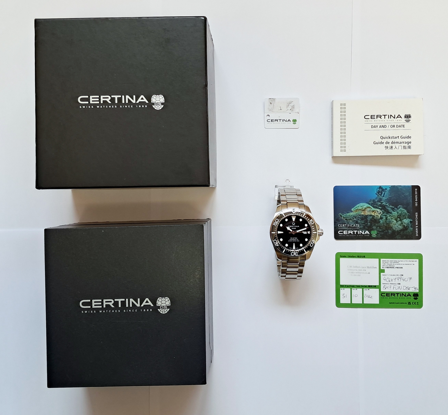 Mint condition and new looking Certina DS Action diver. It comes complete with box and papers and was originally purchased in 2022. The UK retail price is £895. As the Swiss leader in mid range sporting watches, Certina has always set itself the goal of providing outstanding quality at an affordable price. From its very inception, the brand has shown a keen interest in the world of sport. Certina is the Official partner and timekeeper of the FIA World Rally Championship.