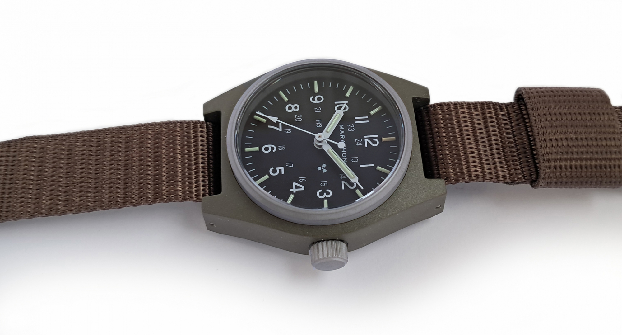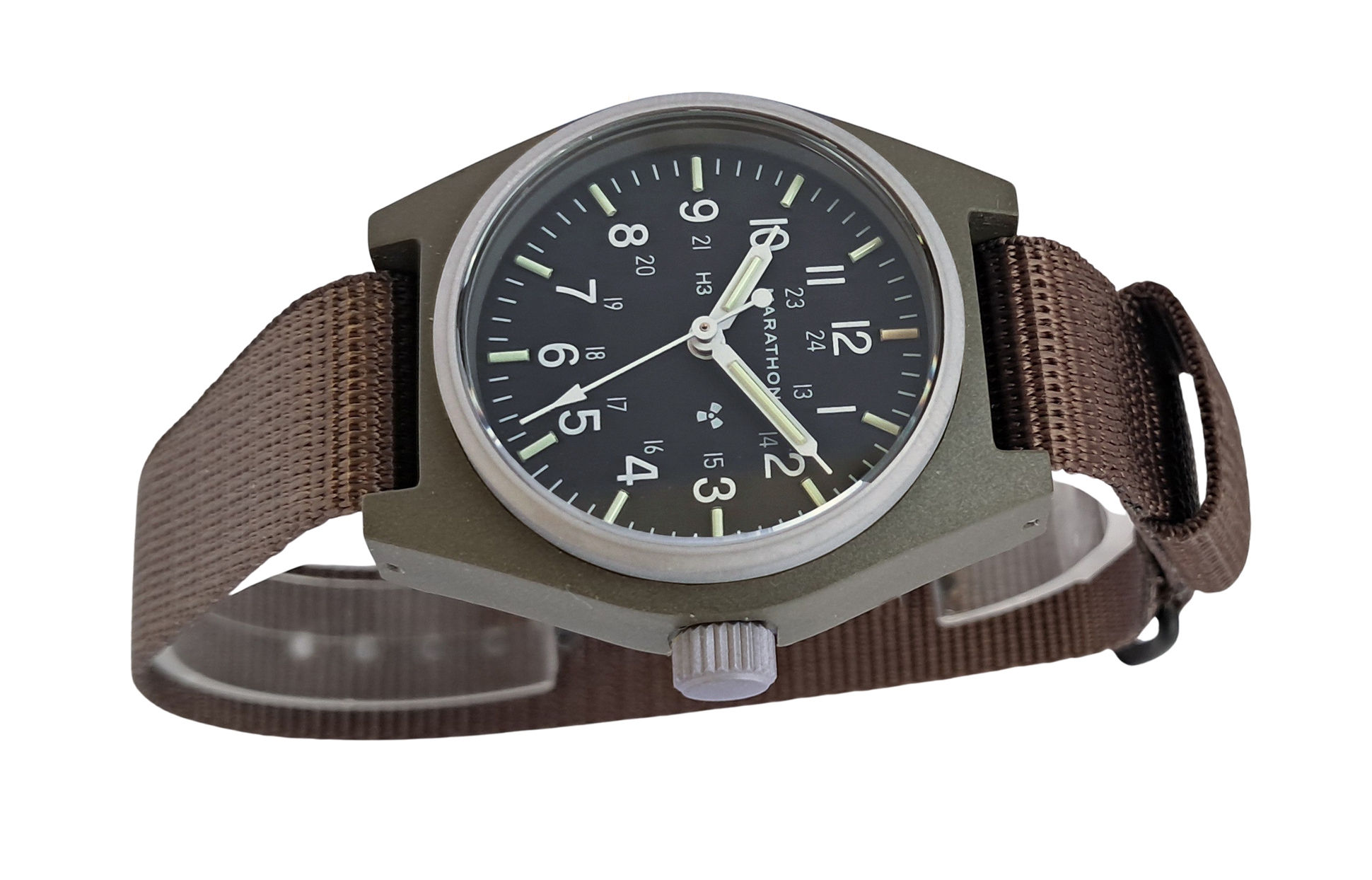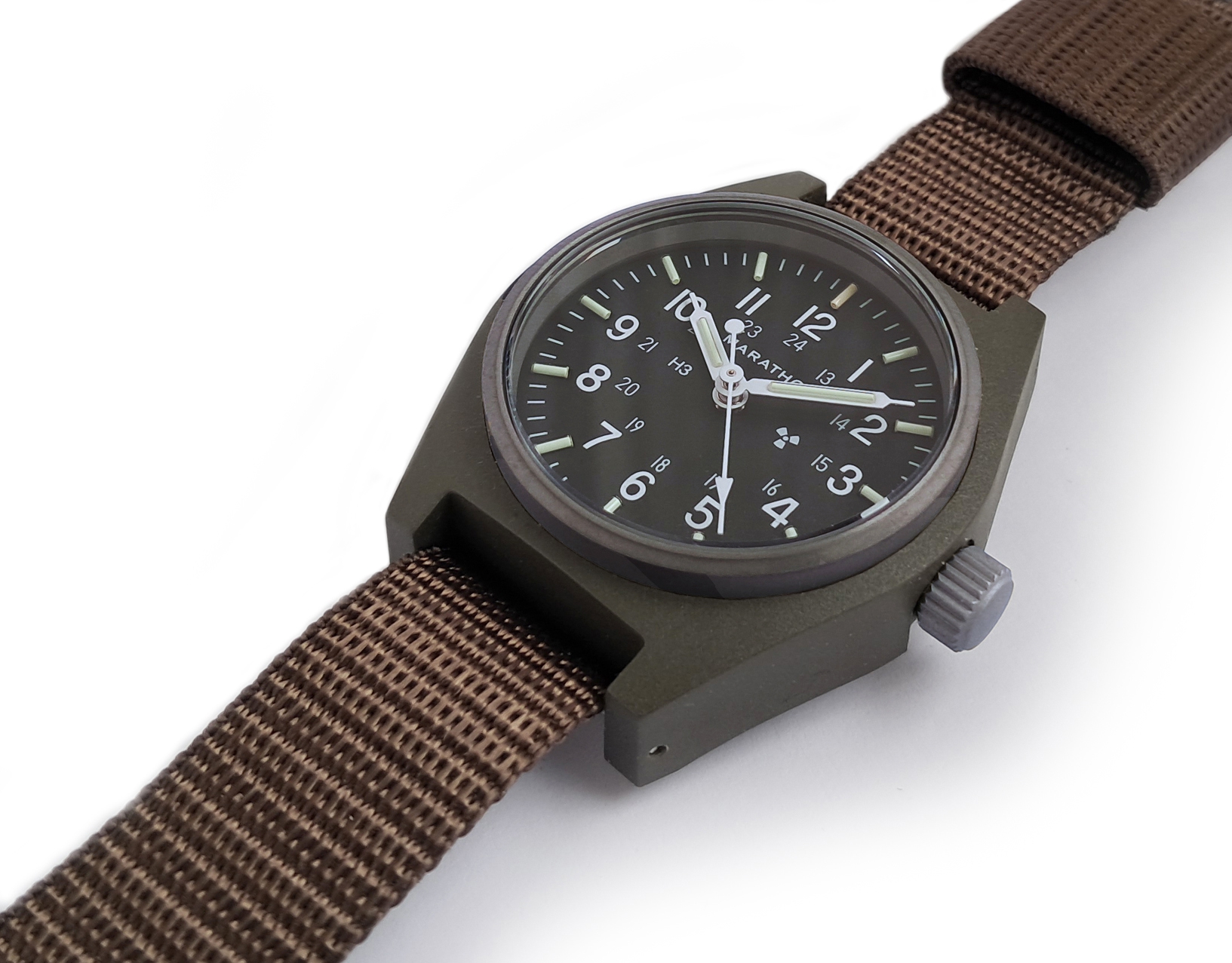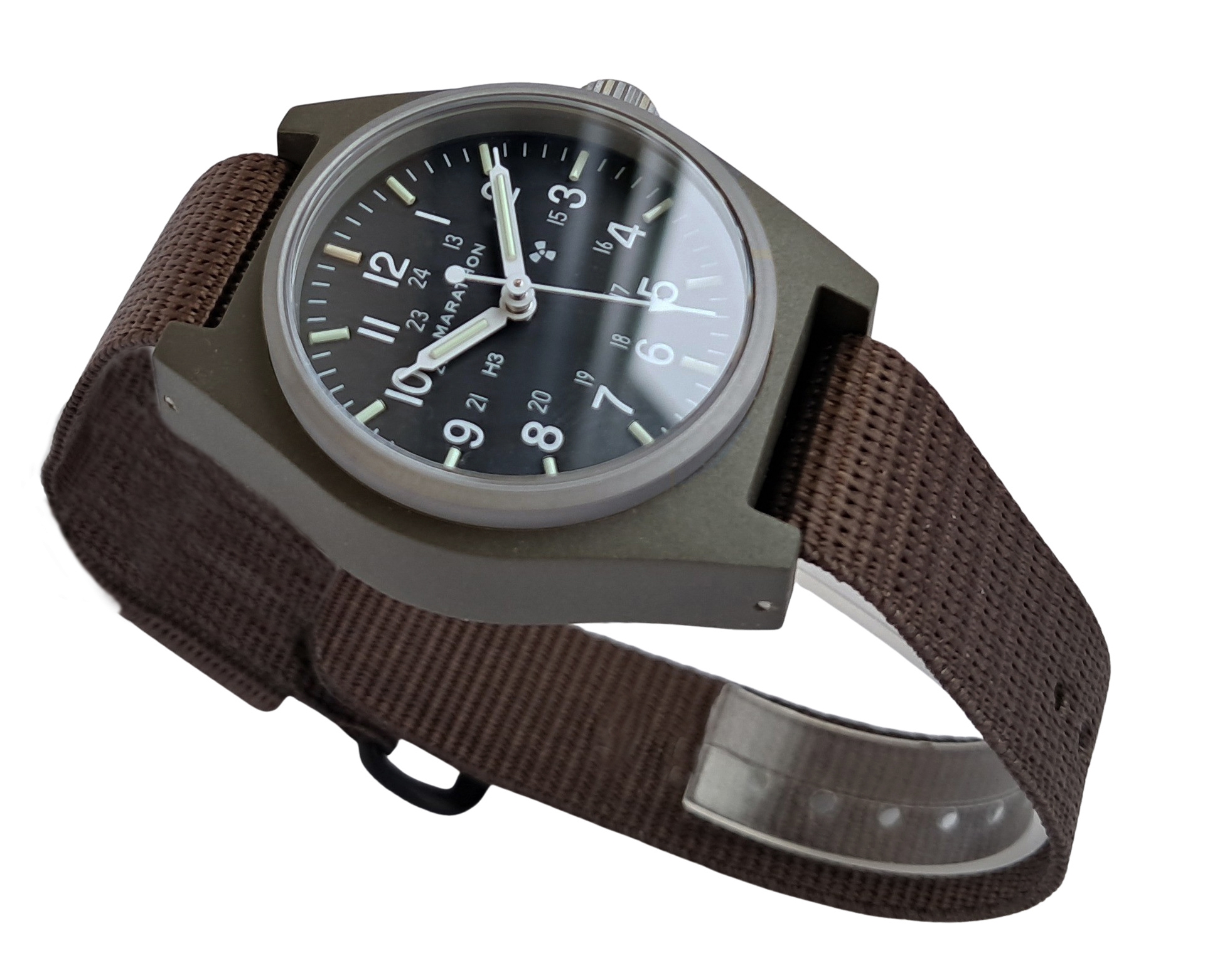 Included with the new General Purpose Mechanical is a one piece nylon military strap which is made in accordance with MIL-S-46383B Type II and provides comfort and durability while remaining lightweight. Also available from Marathon are extra nylon straps in various colours to personalize your GPM.