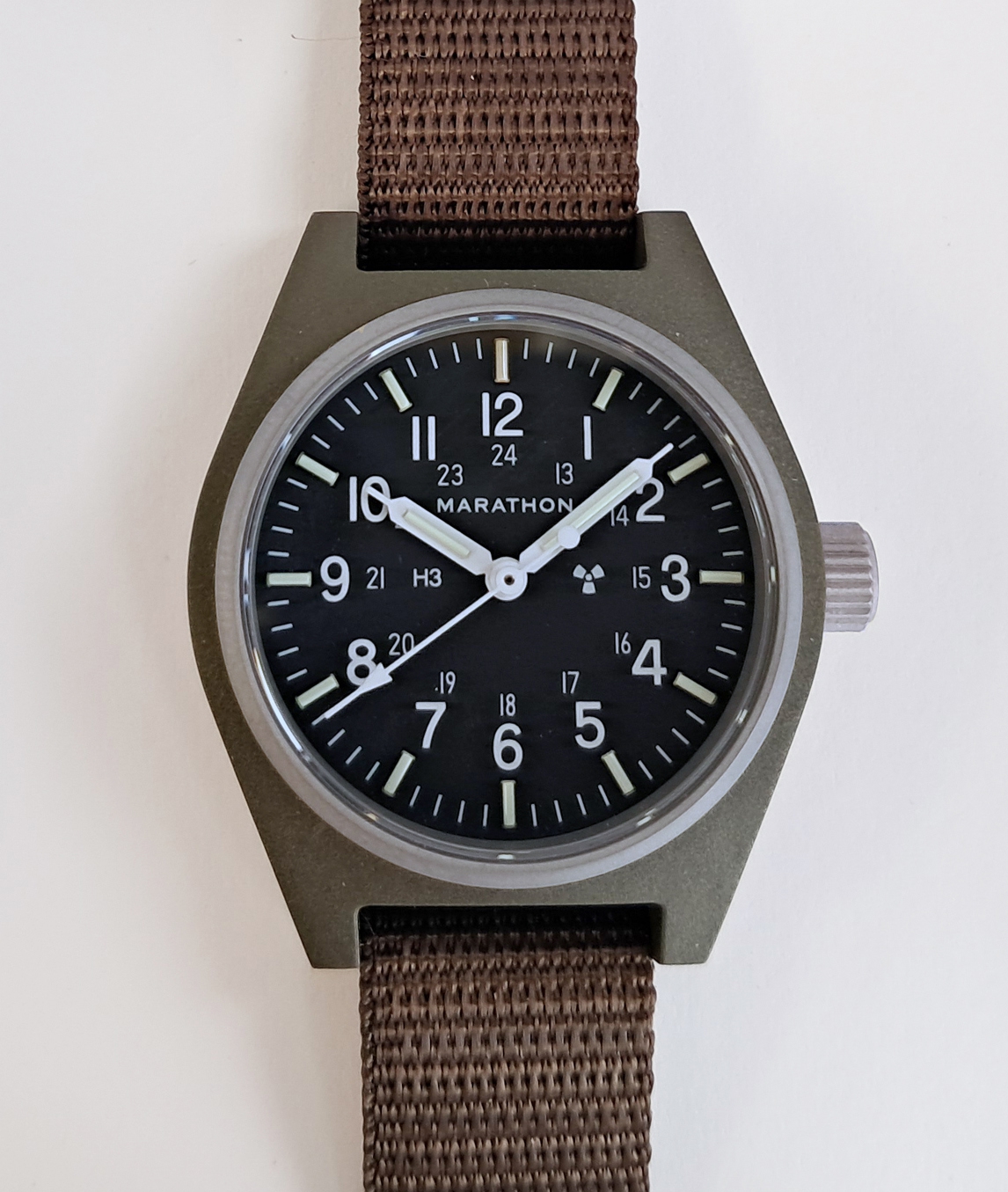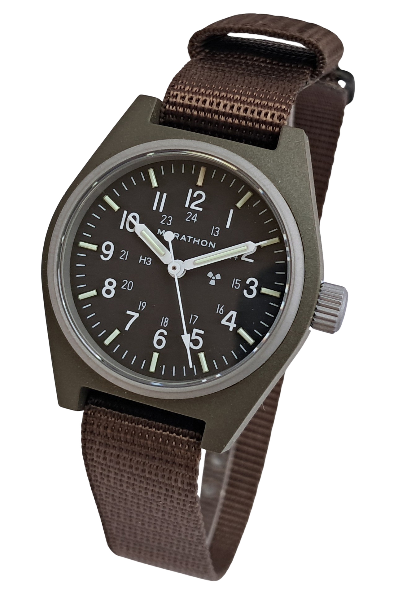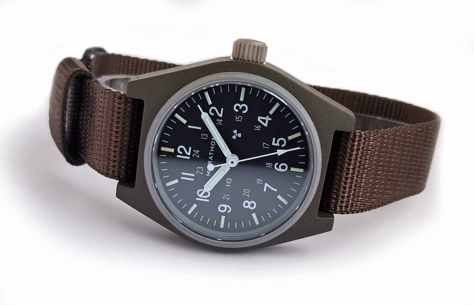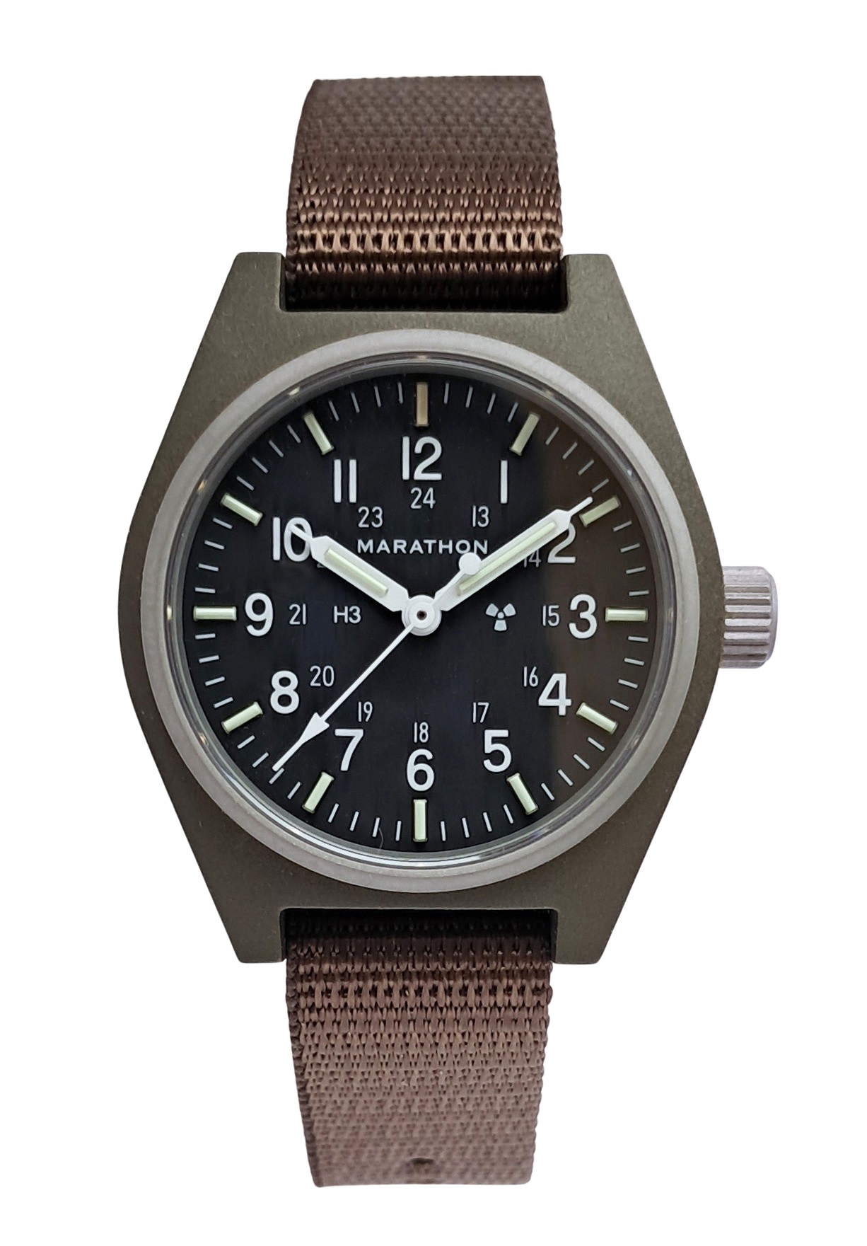 Included with the new General Purpose Mechanical is a one piece nylon military strap which is made in accordance with MIL-S-46383B Type II and provides comfort and durability while remaining lightweight. Also available from Marathon are extra nylon straps in various colours to personalize your GPM.