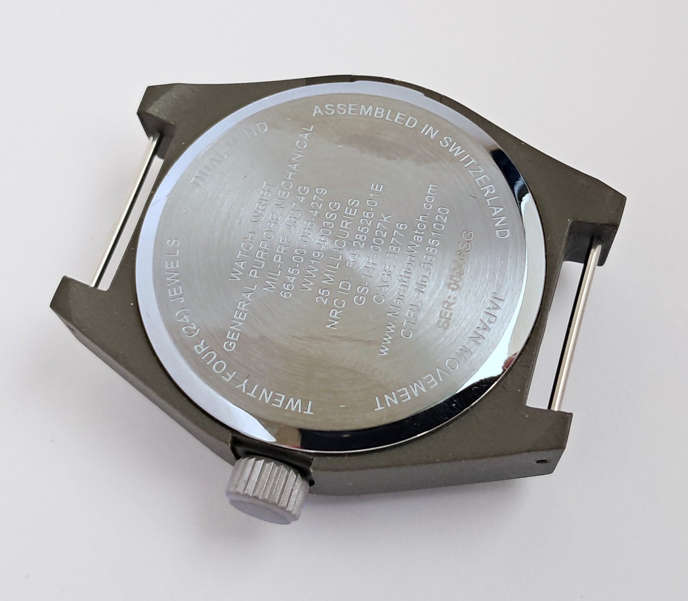 Overall assembly of the watch is performed in La Chaux de Fonds, Switzerland, combining the accuracy of a Marathon designed Japanese movement with reliability and Swiss craftsmanship to bring you a superb watch. The Marathon GPM is a watch that will provide you with years of accuracy, reliability, and enjoyment!