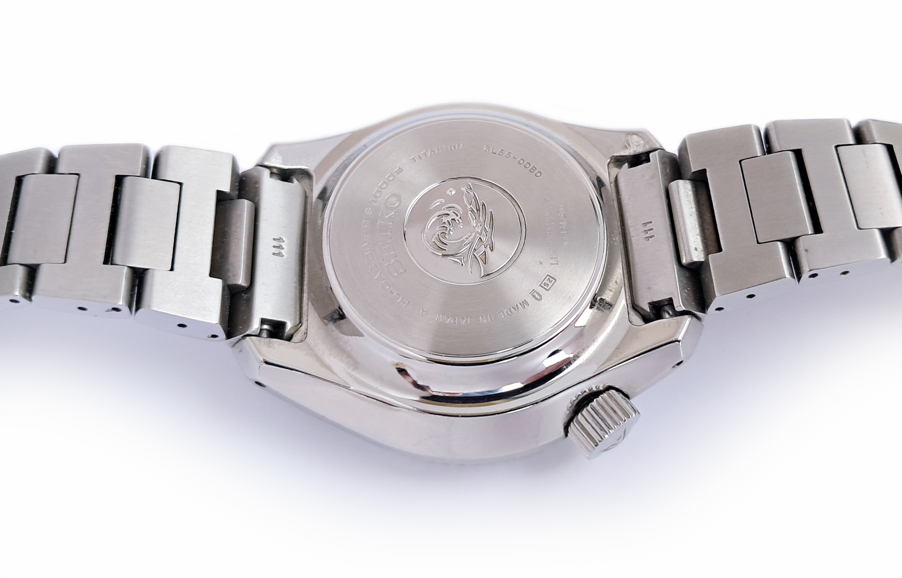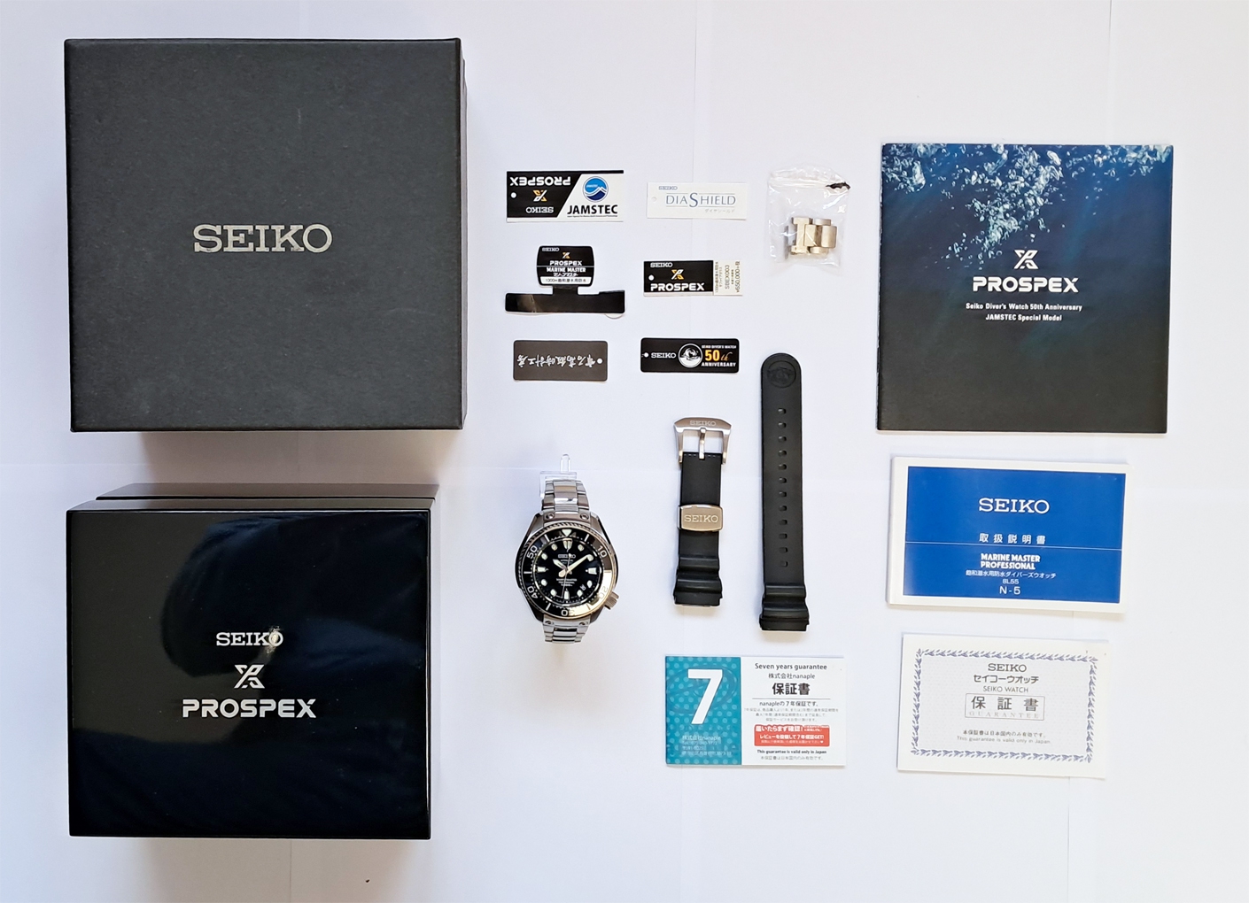 Excellent condition Seiko Prospex Marinemaster JAMSTEC limited edition titanium drivers watch it is number 134 of just of 500 pieces made. It comes with all boxes and papers, full size bracelet with spare Seiko rubber divers strap. Launched in 2015, this one was purchased in Japan in 2016 The inner of the box has a leatherette covering which has become deteriorated. The watch was made in collaboration with long term partner for deep sea research, JAMSTEC (Japan Agency for Marine-Earth Science and Technology) to celebrate the 50th Anniversary of the Seiko Divers watch that celebrates their expertise in manufacturing diver’s watches. The Marinemaster Professional Ref. SBEX003 has a 48mm Titanium case with 1000 meters of water-resistance. The retail price when new was £3,150