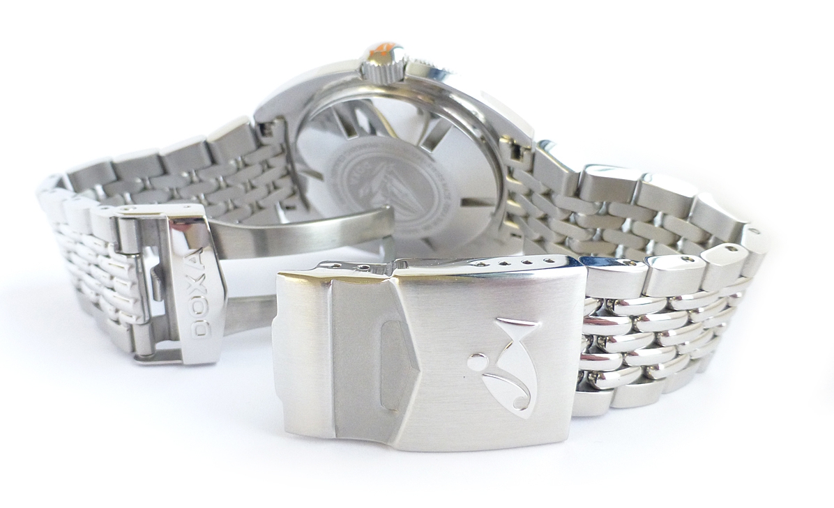 The SUB 300’s 42.5 mm case is made from the highest quality 316L stainless steel. The three-hand self-winding movement holds the prestigious COSC Certified Chronometer certification guaranteeing precision, robustness and reliability. It also provides a 38-hour power reserve. The date window is positioned at 3 o'clock. The SUB 300 naturally features the famous unidirectional rotating bezel, a DOXA patent, with the dual indication of dive time in minutes and depth in meters for calculating no-stop decompression dive times. Featuring a screw-down crown, its water-resistance is rated to 300 meters, or approximately 980 feet.