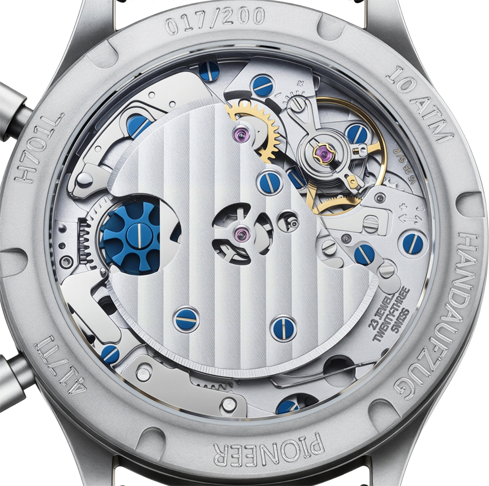 TI instead of ES: With the new 417 TI Desert Pilot Limited Edition, Hanhart presents a 417 made of Grade 5 titanium for the first time – instead of the classic stainless steel traditionally represented by the designation “ES.” The matte finish of the case emphasizes its instrumental character and gives the chronograph a modern, technically driven aesthetic. Available in 39 mm and 42 mm, each limited to 200 pieces, this model combines historic pilot DNA with contemporary material technology and uncompromising mechanics.