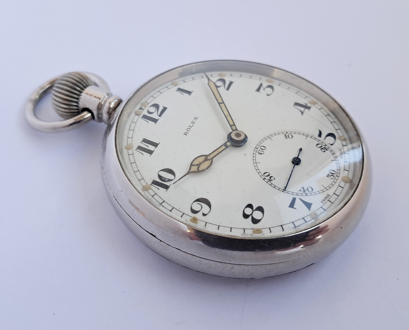 Rolex GSTP WWII British Military Issued Pocket Watch White Dial