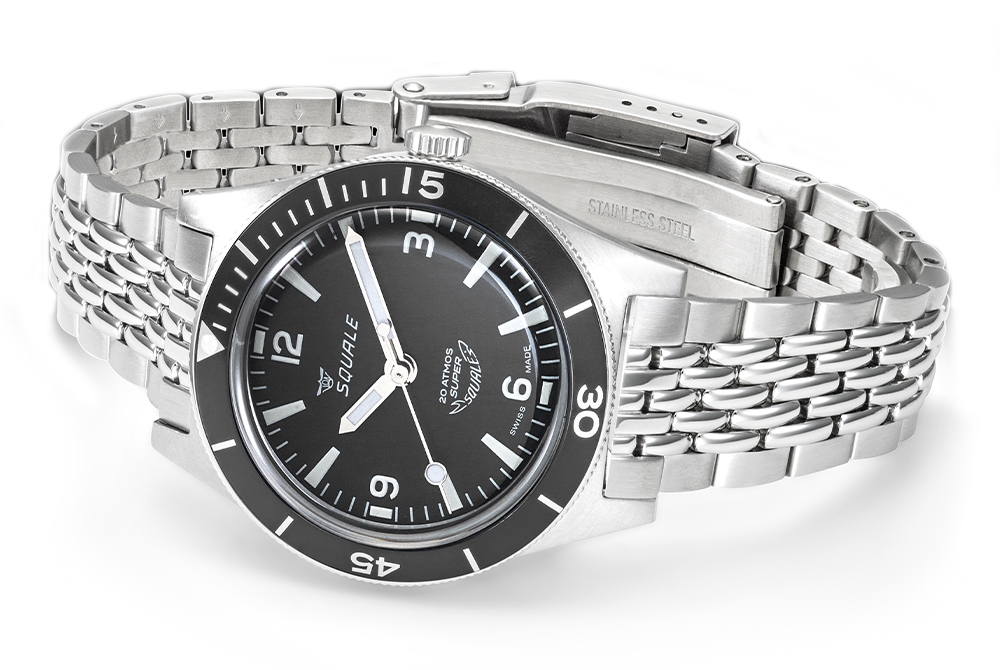 The Super Squale model was born to be a skin diver: with a water resistance of 200 meters, a 38-millimeter diameter case and a width of only 45mm, the Super Squale has been designed to be as lightweight as possible during dives, with or without a wetsuit.